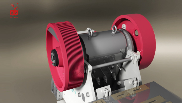 CJ系列顎式破碎機(jī)工作時(shí)采用的是曲動(dòng)擠壓型的工作方式,電動(dòng)機(jī)驅(qū)動(dòng)皮帶輪傳動(dòng),通過偏心軸使動(dòng)顎前后上下運(yùn)動(dòng)。當(dāng)動(dòng)顎上升時(shí),肘板與動(dòng)顎間夾角變大,從而推動(dòng)動(dòng)顎板向固定顎板接近,同時(shí)物料被壓碎或劈碎,達(dá)到破碎的目的;當(dāng)動(dòng)顎下行時(shí),肘板與動(dòng)顎夾角變小,動(dòng)顎板在拉桿和彈簧的作用下,離開固定顎板,此時(shí)已破碎物料從破碎腔下口排出。隨著電動(dòng)機(jī)連續(xù)轉(zhuǎn)動(dòng),破碎機(jī)動(dòng)顎作周期運(yùn)動(dòng)壓碎和排出物料,實(shí)現(xiàn)連續(xù)生產(chǎn)。